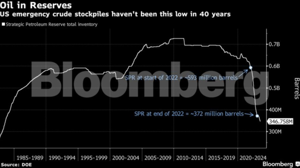 After depleting the U.S. emergency reserve of 235 million barrels of oil bringing it to its lowest level in 40 years, the Biden administration wants to buy up to 3 million barrels of oil for delivery in March 2024 and to release monthly offers to buy that amount of oil for the reserve through May 2024. Biden sold 180 million barrels of emergency reserve oil last year–nearly five times bigger than any previous sale–to lower gasoline prices before the mid-term election, as gas prices hit $5 a gallon in June of 2022. Biden’s Energy Department (DOE) is now willing to buy back oil for the Strategic Petroleum Reserve (SPR) at up to $79 per barrel, when earlier the buyback price was set closer to $70 a barrel. However, that is still about $50 a barrel more than the average price of oil in the reserve, which was $29.70 per barrel. Replenishing the SPR will be a slow and expensive process, taking decades, hindered by a lack of funding and aging infrastructure.