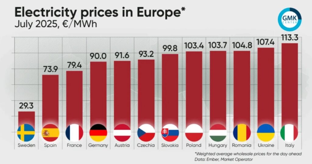 Italy’s household electricity prices hit €0.3291 per kWh in 2025, exacerbated by gas reliance amid reduced Russian supplies.