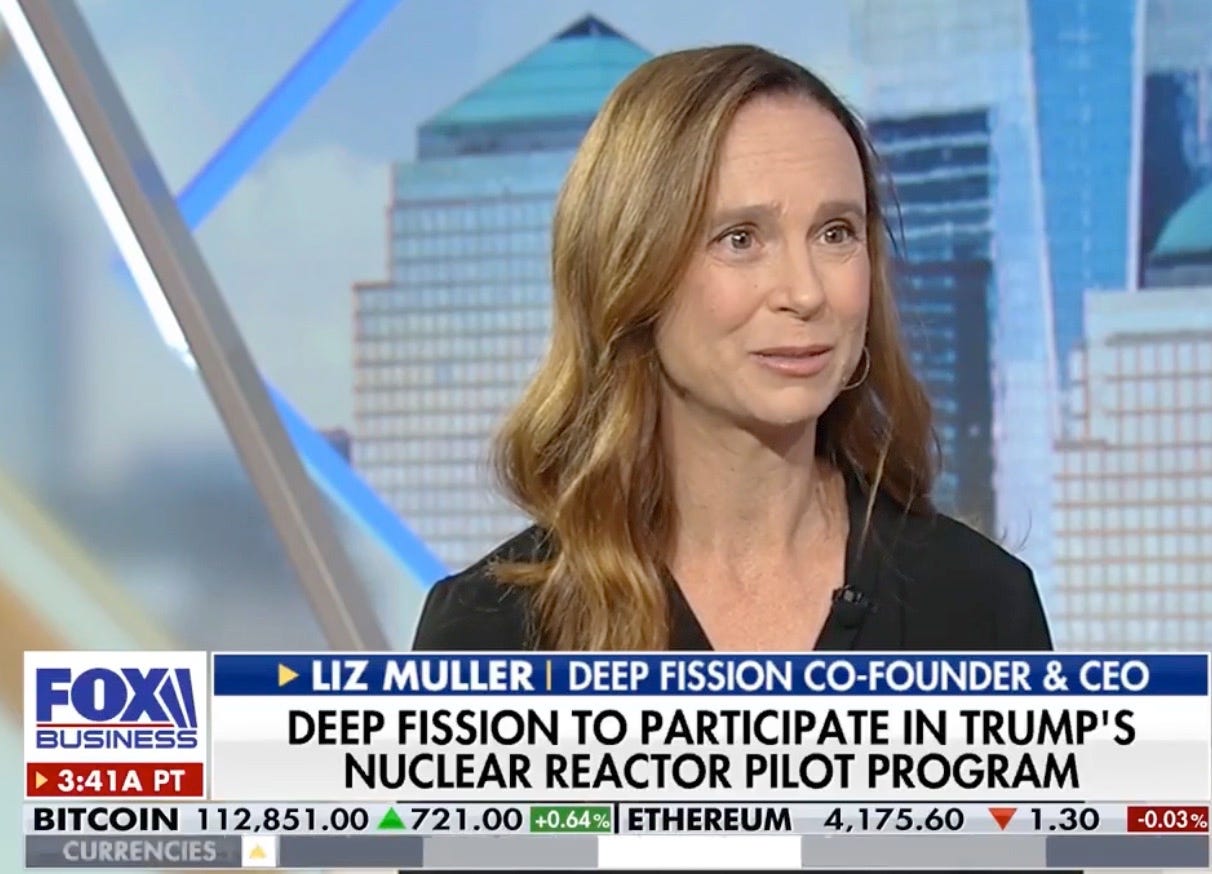 In August, Deep Fission was selected by the Department of Energy to participate in the nuclear reactor pilot program, which aims to have three test reactors achieve criticality by next July. In September, the company filed an S-1 with the Securities and Exchange Commission, signaling its intent to go public. In mid-October, during the Texas Nuclear Summit in Austin, I did a short interview with the company’s CEO, Liz Muller. Here’s a transcript of that interview. It has been edited and condensed for clarity.
