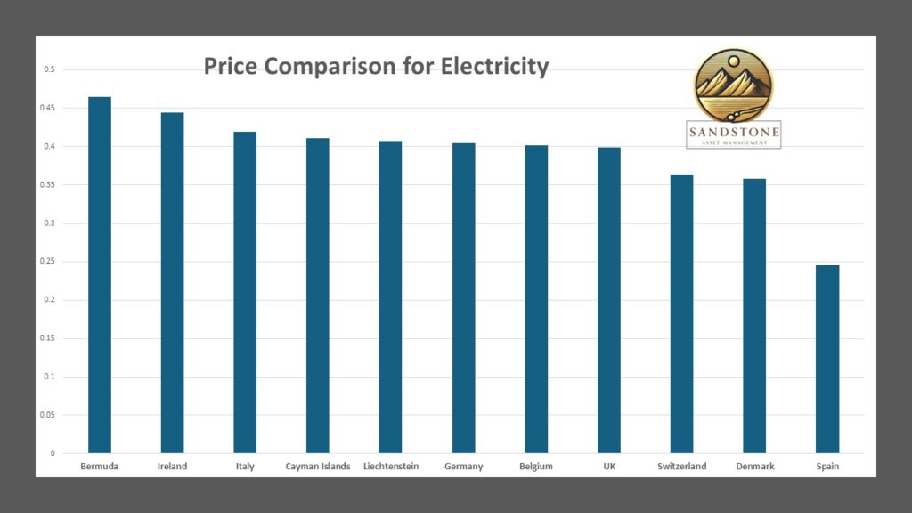 Top countries for cost of electricity, Source Sandstone Asset Management