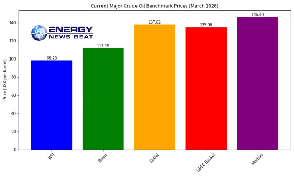 .As of March 20-21, 2026, the divergence has never been starker. Paper benchmarks show Brent at $112.19/bbl and WTI at $98.23/bbl. Yet physical benchmarks used by Asian refineries (the marginal global buyer) are trading far higher: Dubai at $137.82/bbl, OPEC Basket at $135.06/bbl, and Murban at $146.40/bbl. That’s a $25–$48 premium over Brent for delivered crude in key consuming regions.