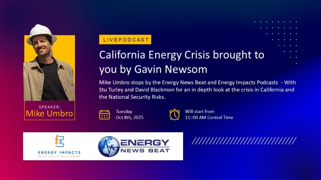 This was a fun podcast featuring Mike Umbro of Californians for Energy and Science, along with David Blackmon of the Energy Impacts podcast.