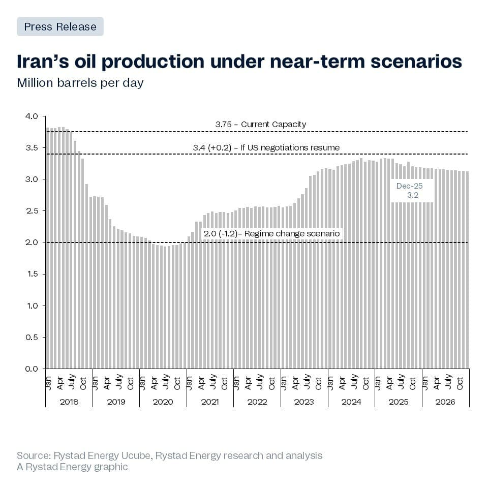 - Iran’s crude production is expected to remain stable near 3.2 million bpd, with protests posing limited short-term risk to upstream operations.