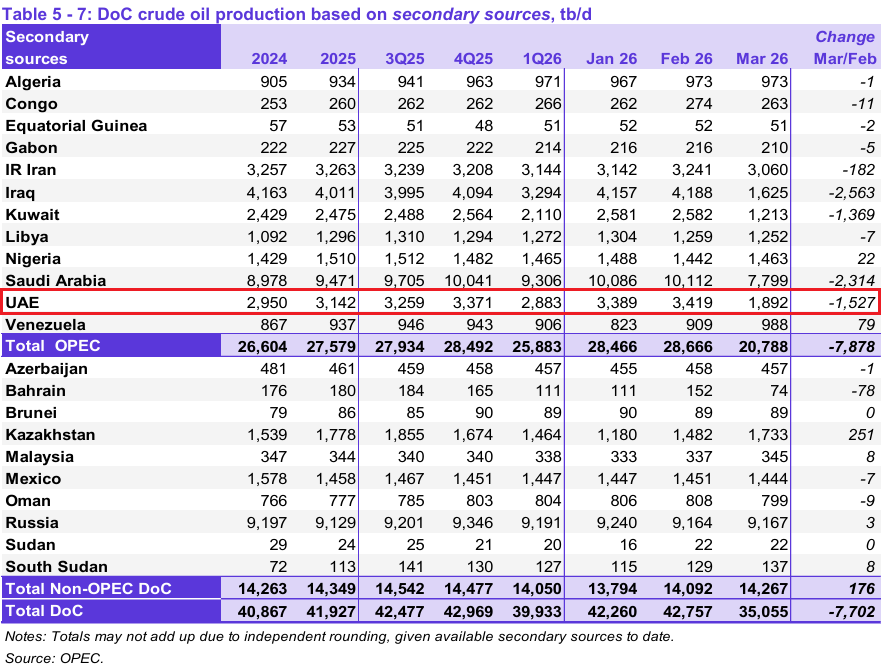 “While near-term effects may be muted given ongoing disruptions in the Strait of Hormuz, the longer-term implication is a structurally weaker OPEC. Outside the group, the UAE would have both the incentive and the ability to increase production, raising broader questions about the sustainability of Saudi Arabia’s role as the market’s central stabiliser – and pointing to a potentially more volatile oil market as OPEC’s capacity to smooth supply imbalances diminishes.”