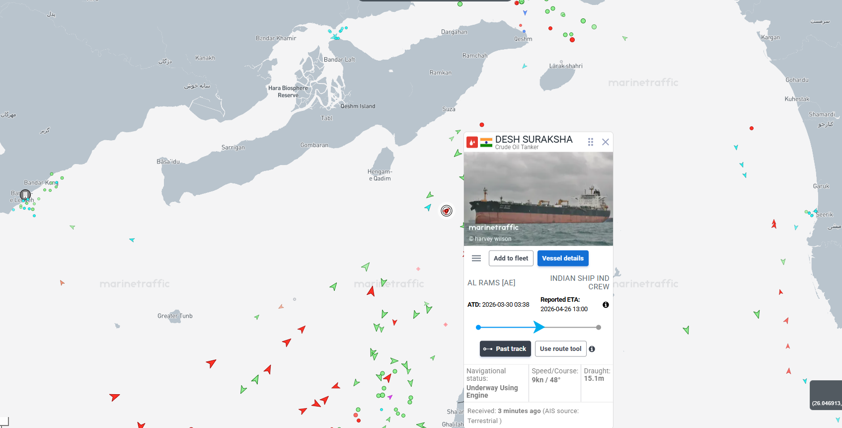 At the time of writing this article, the Desh Suraaksha looked to be heading to the Strait from Oman. A Crude oil tanker is looking to be heading to India.