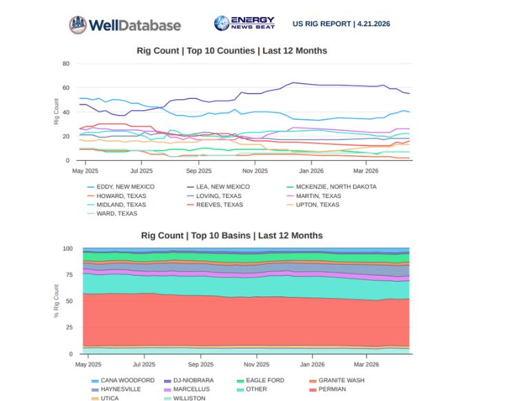 - WellDatabase Rig Report (April 21, 2026 edition) https://welldatabase.com/
