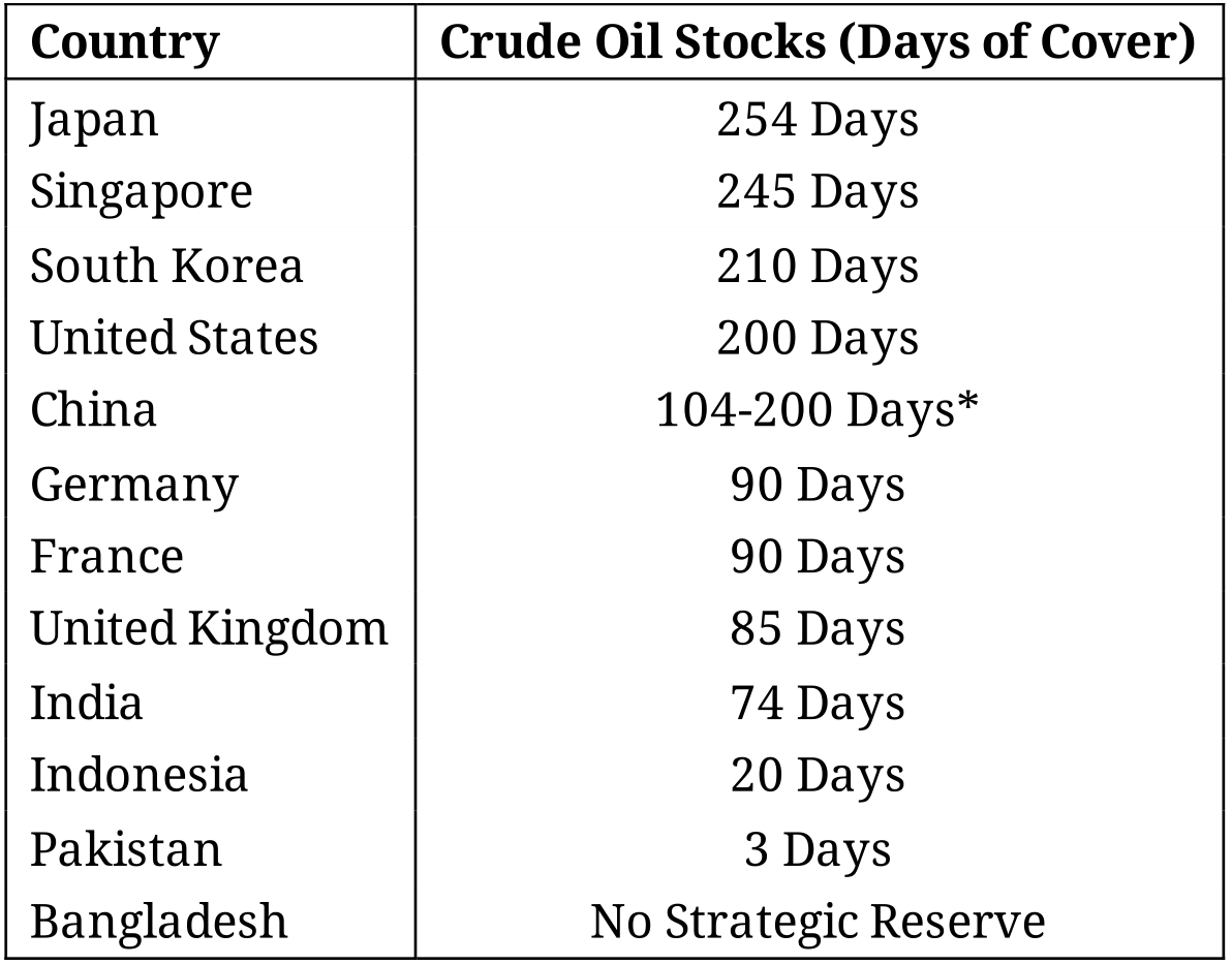 Pakistan has no strategic reserve. Bangladesh has no strategic reserve. No buffer. No fallback. No plan B.