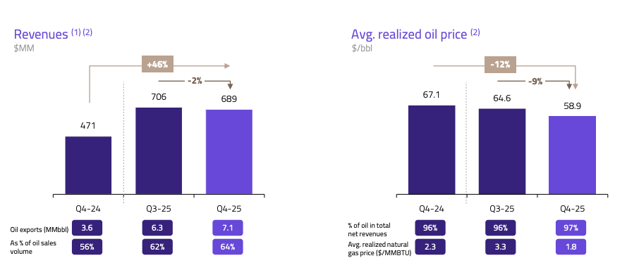- Revenue is projected to grow from $2.17 billion in 2025 to $3.8 billion by 2028, a 75% increase driven by production growth and export pricing. EBITDA is expected to grow from $1.6 billion to $2.8 billion over the same period. Free cash flow of approximately $1.5 billion per year between 2026 and 2028 funds the growth program while leaving room to return capital to shareholders