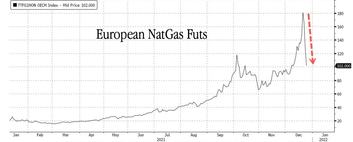 However, there is good news for the continent as benchmark Dutch front-month gas plunged as much as 43% from a peak of 180 euros per megawatt-hour to around 102 euros in the last several days as a flotilla of US liquefied natural gas (LNG) tankers is headed to the fuel-starved continent.