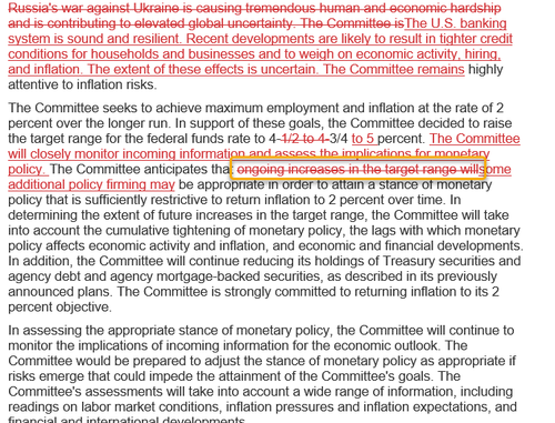 …language about “ongoing increases in the target range” will be appropriate removed and replaced with “some additional policy firming may be appropriate”