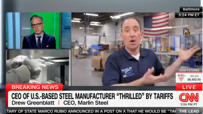 This interview with Drew Greenblatt, CEO of Marlin Steel, was great, and I honestly did not have CNN down for a quality interview, but here we are. Scott Jennings is the only one I watch from CNN, and only clips as I can not watch Main Stream Media very often.