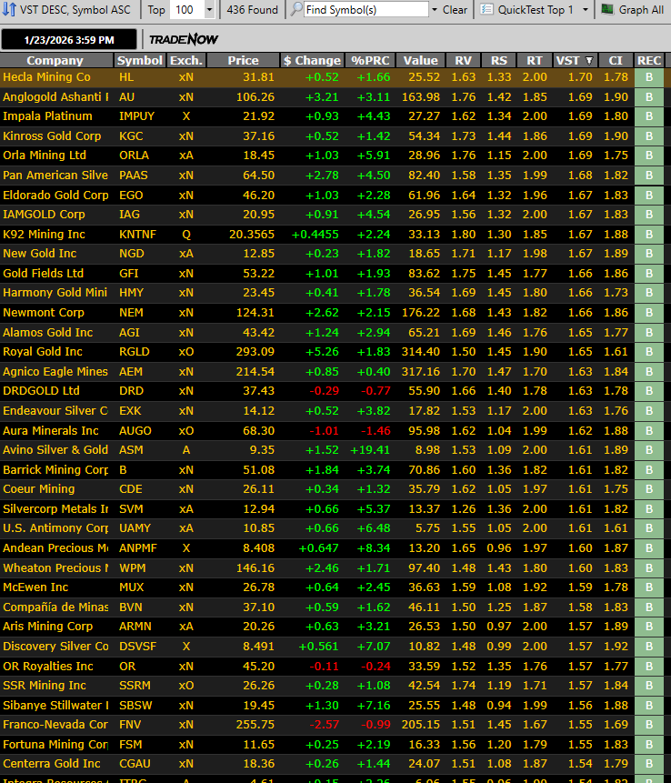 I am putting a few that I am looking at for my portfolio on the potential Silver Run, as mentioned above. We cannot print the analyst reports that are available through VectorVest, and we highly recommend their subscription if you are investing in the market.