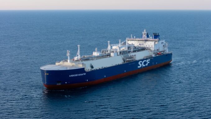 The Alexey Kosygin, with a cargo capacity of 172,600 cubic meters, represents Russia’s first domestically assembled Arc7 ice-class vessel, capable of navigating through up to 2.1 meters of ice without icebreaker assistance.