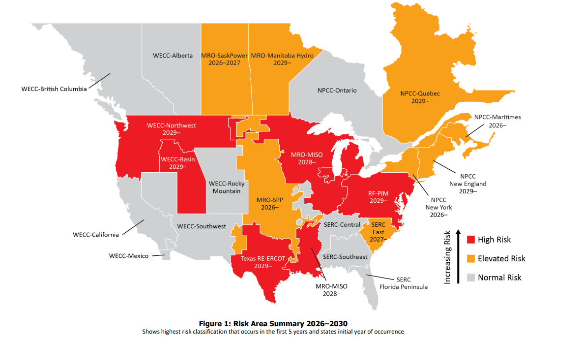 While the press release doesn’t dive deep into specifics, the LTRA indicates widespread concerns across the BPS. Areas like the Midwest (MISO, PJM), Texas (ERCOT), the West (WECC), and parts of the Southeast and Northeast are flagged for elevated risks. Winter conditions could push these regions into shortfall territory by 2026, especially if extreme weather hits. For instance, data center clusters in Virginia or Texas could strain local grids, leading to dependency on imports from neighboring areas.