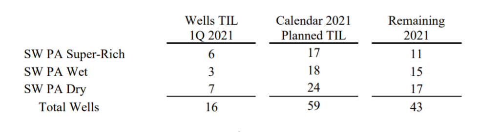 Total production for first quarter 2021 averaged approximately 2,081 net Mmcfe per day. By area, southwest Marcellus production averaged 2.0 Bcfe per day while the northeast Marcellus assets averaged 77 net Mmcf per day during the quarter.