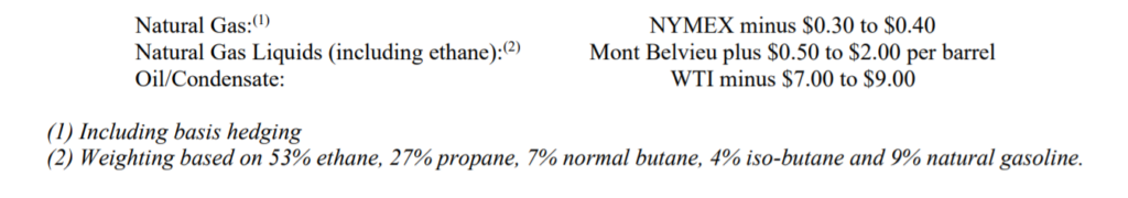 - Natural gas differentials, including basis hedging, averaged $0.14 per mcf below NYMEX