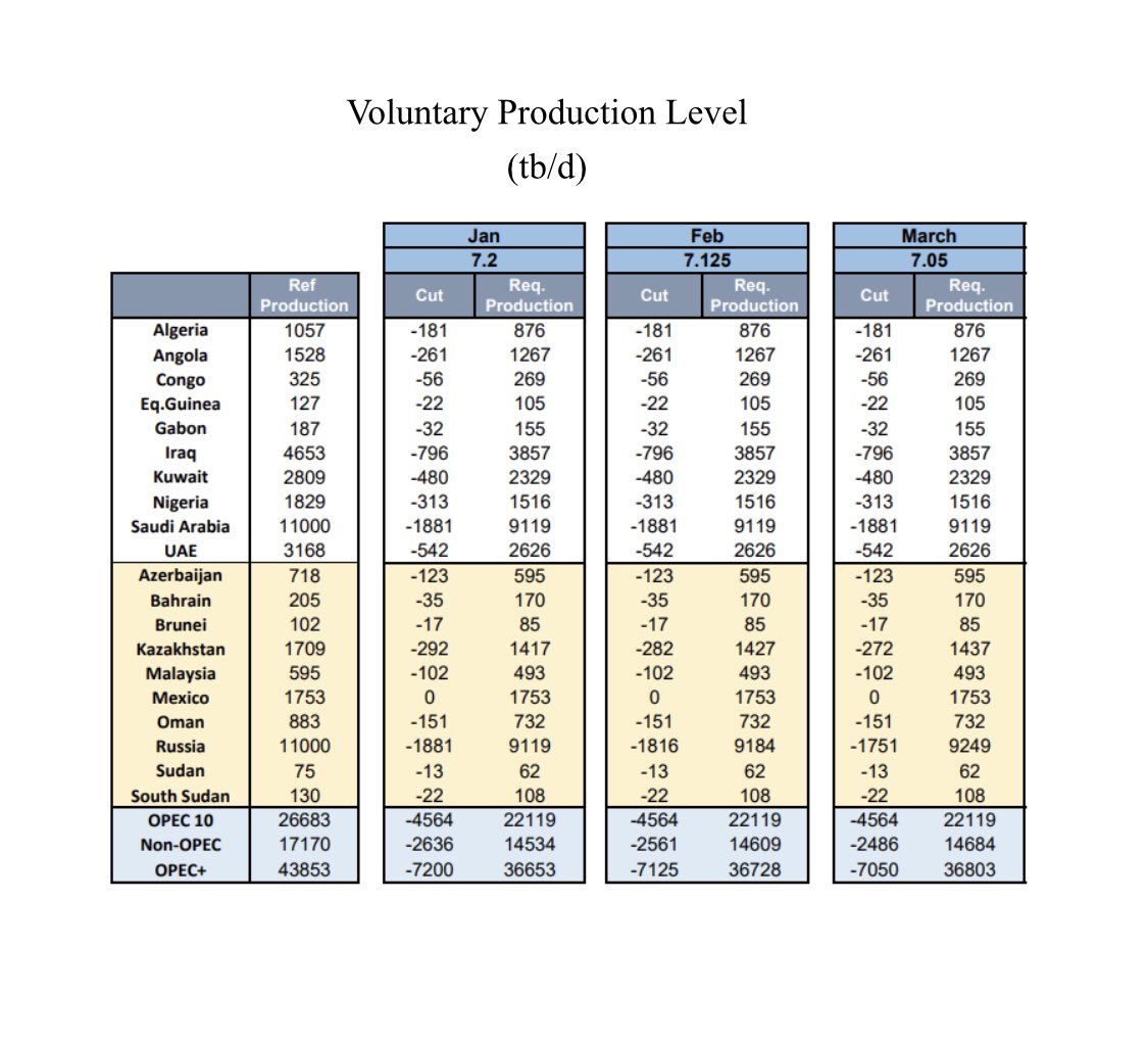 The rest of the Organization of Petroleum Exporting Countries and its allies will hold their output steady in February and March, according to the communique
