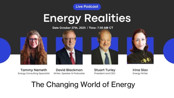 You won’t want to miss this episode of the Energy Realities Podcast with David Blackmon, Irina Slav, Tammy Nemeth, and Stu Turley as they dive into the major shifts shaping today’s global energy landscape. From geopolitical tensions and critical mineral shortages to the ongoing tug-of-war between renewable ambitions and oil and gas realities, the hosts unpack how policy, production, and politics are redefining the future of energy.