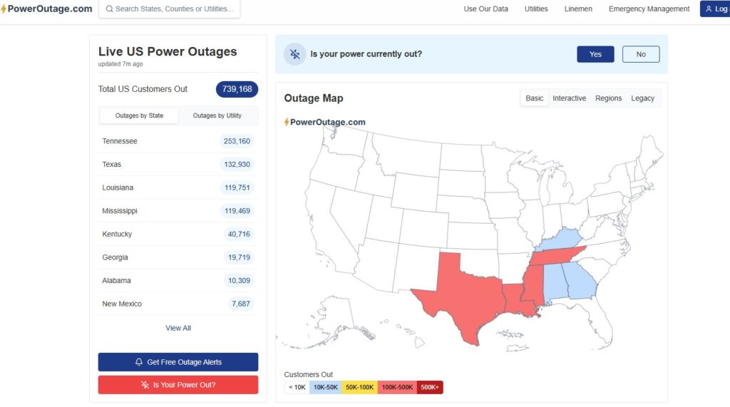 Other reports indicate over 500,000 outages nationwide, with additional figures around 135,000 tied directly to the weather event.