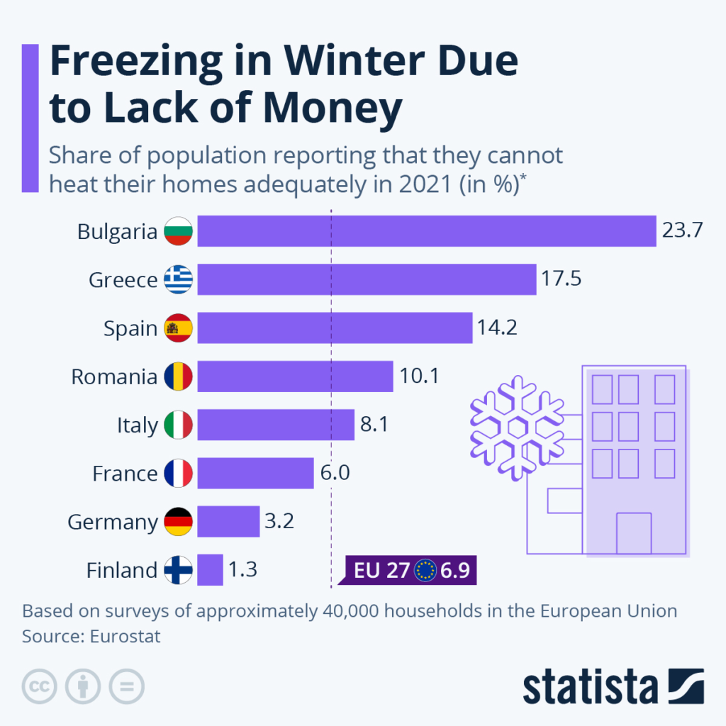 On average, around seven percent of the EU population are too poor to heat their homes properly…