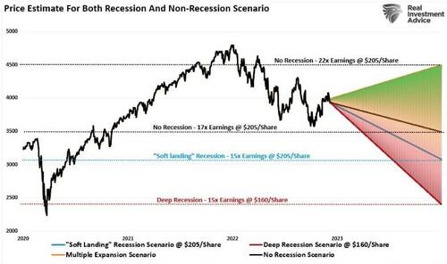 As we discussed in “Valuation Math Suggests Difficult Markets,” there is a wide range of potential outcomes for next year. Much will depend on the Fed’s monetary policy changes and whether the economy slips into a recession.